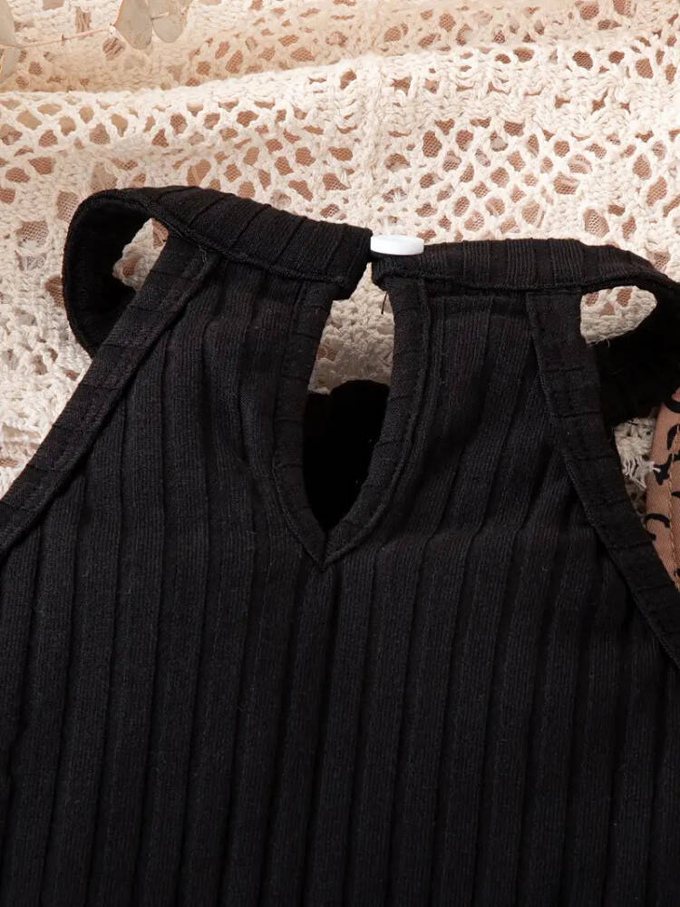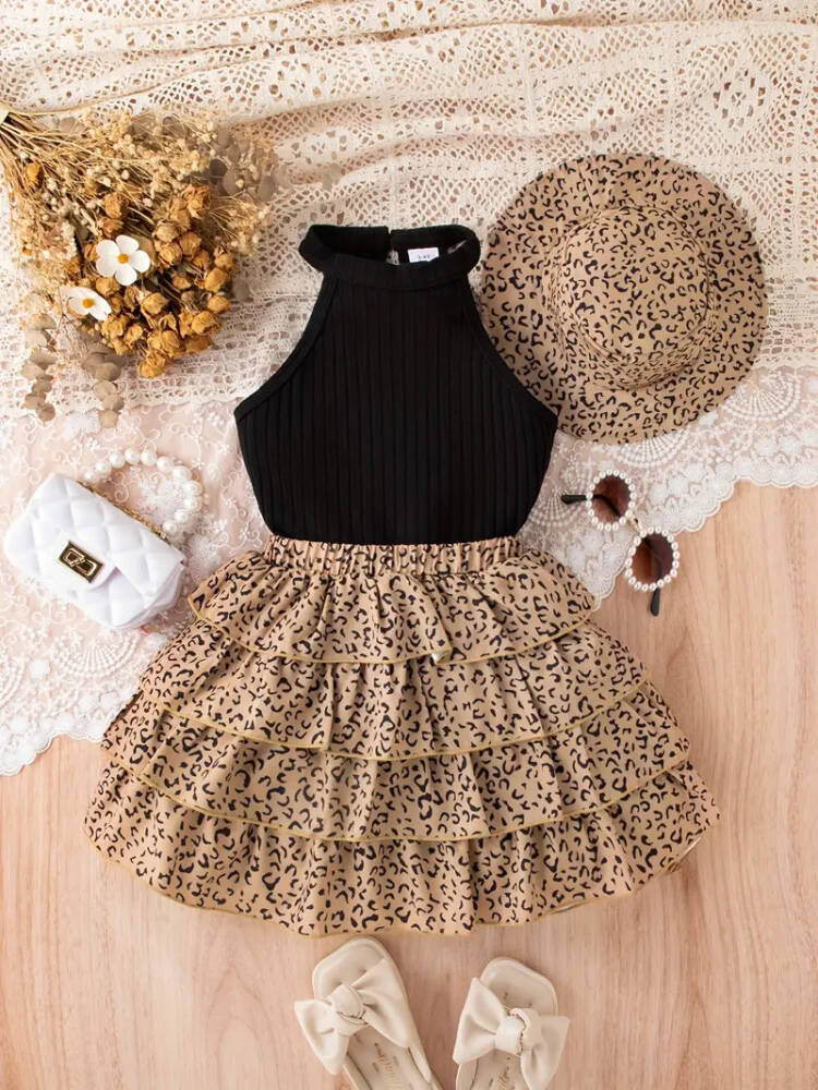Leopar desenli tasarımı ile göz alıcı bir görünüm sunar.; - A-line/kloş kalıbı sayesinde rahat hareket etme özgürlüğü sağlar.; - Dokuma kumaş tipi, dayanıklılığı ve konforu bir arada sunar.; - Kısa/mini boyu ile enerjik ve şık bir stil yaratır.; - Siyah rengi, kolay kombin yapabilme avantajı sağlar.; - Türk menşeli olmasıyla yerel üretim kalitesini yansıtır.; - Çocuk yaş grubuna uygun olarak tasarlanmıştır; 6-7 yaş beden seçeneği mevcuttur.; - Kalın askılı kol tipi ile omuzları rahatça sarar ve destekler.; - Askılı kol boyu, yaz aylarında serinlik hissi verirken şıklığı da korur.; - Orta kalınlıkta kumaşı mevsim geçişlerinde ideal konfor sunar.; - Halter yaka tasarımı ile modern ve feminen bir hava katarken boynu serbest bırakır.; - Gündüzden geceye her ortama uyum sağlayacak esneklikte tasarlanmıştır.; - Lastikli bel yapısı sayesinde vücuda mükemmel uyum sağlar ve rahatlık sunar.; - Bluz-etek alt-üst takım halinde gelerek pratik kullanım imkanı tanır.; - Baskılı ürün tipi ile canlı ve dinamik bir görünüm elde edilir.; - Kemersiz tasarım minimalist stil sevenler için idealdir.;