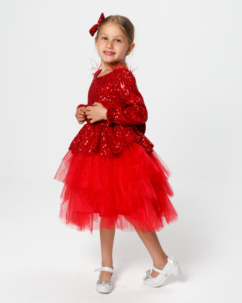 - Özel günlerde kız çocuklarının şıklığını tamamlayacak payetli tül katlı abiye elbise, göz alıcı bir görünüm sunar.; - Normal boy tasarımı ile her çocuğun rahatça giyebileceği bu elbise, hareket özgürlüğünü kısıtlamaz.; - Lacivert rengiyle klasik ve zamansız bir tarz yaratırken, çocukların enerjisini yansıtır.; - 3-15 yaş arası çocuklar için ideal olan bu elbise, onların büyüme dönemine uygun olarak tasarlanmıştır.; - Regular kalıbı sayesinde vücuda tam otururken konforlu bir kullanım sağlar.; - Dokuma kumaşı dayanıklılığı artırarak uzun süreli kullanım imkanı tanır.; - Fermuarlı kapama şekli pratiklik kazandırarak kolayca giyilip çıkartılabilirliği arttırır.; - Bebe yakası detayı ile zarif bir dokunuş ekleyerek feminen çizgiyi ön plana çıkarır.; - Üretim yeri Türkiye'de gerçekleştirilmiş olup yerel malzemelerle üretilmiştir.;