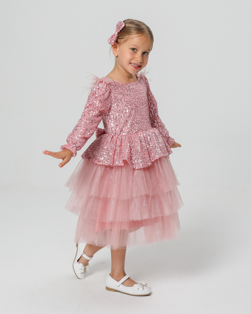 Özel günlerde kız çocuklarının şıklığını tamamlayacak payetli tül katlı abiye elbise, göz alıcı bir görünüm sunar.; - Normal boy tasarımı ile her çocuğun rahatça giyebileceği bu elbise, hareket özgürlüğünü kısıtlamaz.; - Lacivert rengiyle klasik ve zamansız bir tarz yaratırken, çocukların enerjisini yansıtır.; - 3-15 yaş arası çocuklar için ideal olan bu elbise, onların büyüme dönemine uygun olarak tasarlanmıştır.; - Regular kalıbı sayesinde vücuda tam otururken konforlu bir kullanım sağlar.; - Dokuma kumaşı dayanıklılığı artırarak uzun süreli kullanım imkanı tanır.; - Fermuarlı kapama şekli pratiklik kazandırarak kolayca giyilip çıkartılabilirliği arttırır.; - Bebe yakası detayı ile zarif bir dokunuş ekleyerek feminen çizgiyi ön plana çıkarır.; - Üretim yeri Türkiye'de gerçekleştirilmiş olup yerel malzemelerle üretilmiştir.;