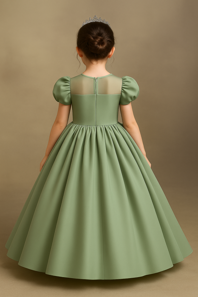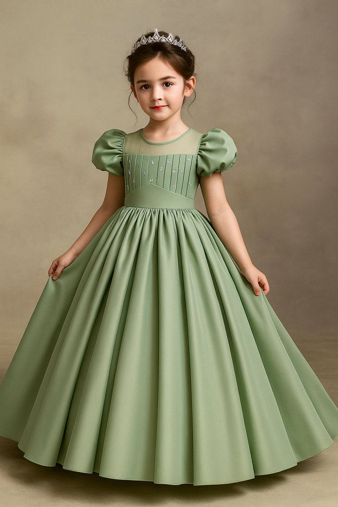 Kız Çocuk Prenses Abiye Elbise – Özel Gün ve Parti Kıyafeti-Tarlatanlı Yeşil