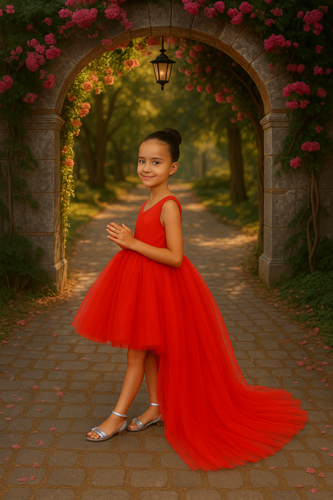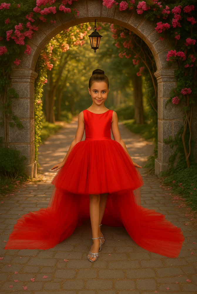 Kız çocuklarına özel tasarlanmış, prenses havasını yansıtan tül kuyruklu elbise.; - Normal boy ölçüsüyle her yaş grubundaki kızların rahatça giyebileceği ideal uzunlukta.; - Siyah renk seçeneği ile şıklığı ve zarafeti ön plana çıkaran bir görünüm sunar.; - Asimetrik kalıbı sayesinde modern ve trend bir siluet oluşturur.; - Dokuma kumaşı, dayanıklılığı ve konforu bir arada sunarak uzun süreli kullanım imkanı sağlar.; - Fermuarlı kapama şekli pratik kullanım kolaylığı sağlar; hızlıca giyilip çıkarılabilir.; - Aksesuar detayları ile zenginleştirilmiş tasarım, göz alıcı bir stil vurgusu yapar.; - Bebe yakasıyla masalsı bir dokunuş eklerken aynı zamanda rahatlık sunar.; - Astarlı yapısı sayesinde iç göstermez ve ekstra koruma sağlar.; - Düz deseniyle sadelikten yana olanların tercihi olacak şekilde tasarlanmıştır.; - Türkiye menşeli olmasıyla yerel üretim avantajlarından faydalanır.; - Hem gündüz hem de gece etkinlikleri için uygun ortamlara adapte edilebilir.;