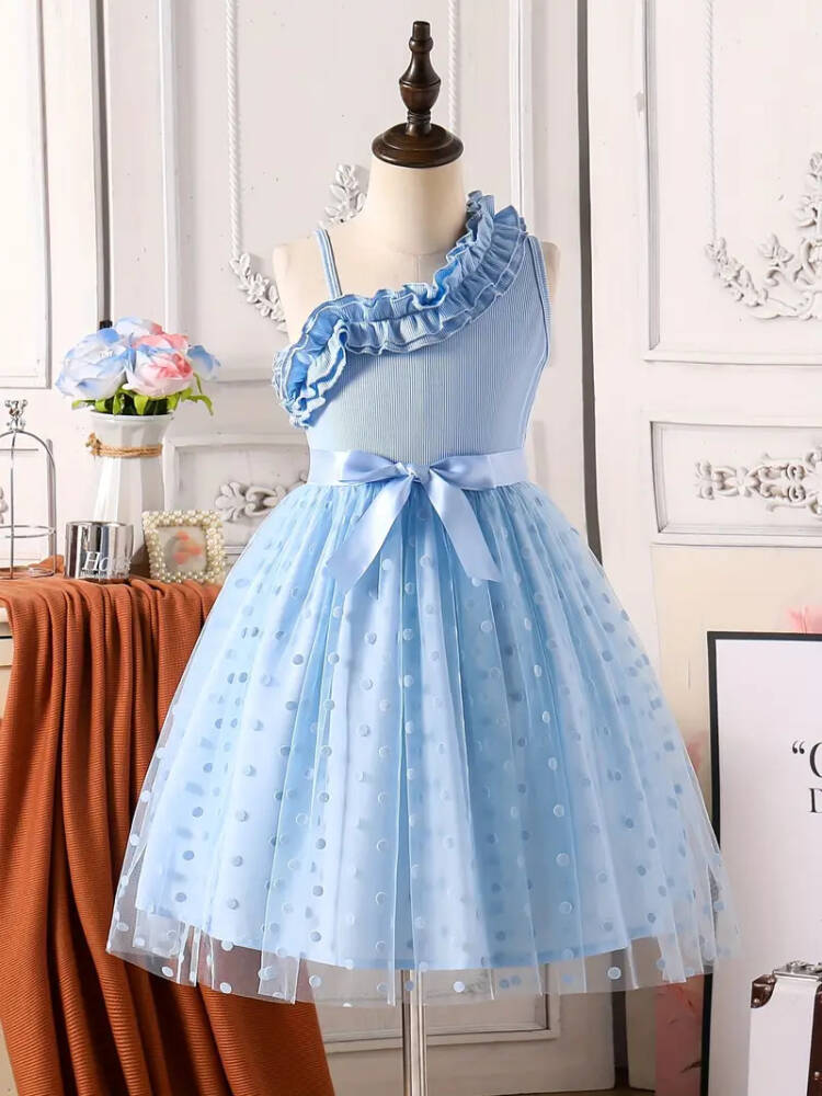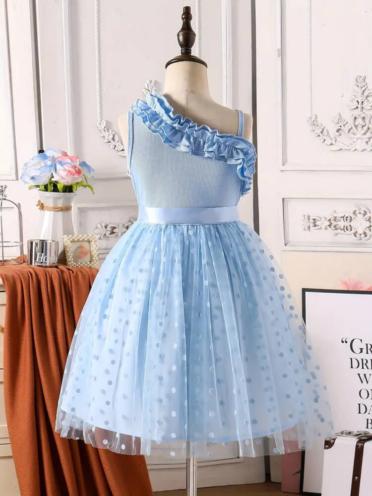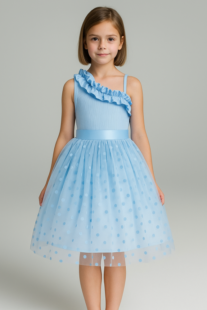 - Tek omuz tasarımı ile modern ve şık bir görünüm sunar.; - A-line / kloş kalıbı sayesinde rahat hareket etme imkanı sağlar.; - Eteği fırfırlı detaylarıyla hareketli ve göz alıcı bir siluet oluşturur.; - Kemersiz tasarımı, elbisenin doğal hatlarını ön plana çıkarır.; - Tek kol detayı ile zarif ve asil bir duruş sergiler.; - Astarlı yapısı ile konforlu bir kullanım sunarken, puantiyeli deseniyle neşeli bir hava katar.; - Cepsiz tasarımı, sade ve temiz bir görünüm sağlar.; - Beli lastikli özelliği sayesinde her bedene uyum sağlayarak rahatlık sunar.; - Kolsuz tasarımı yaz ayları için idealdir.; - Saten dokuma tipi, yumuşak dokusuyla cildi rahatsız etmez.; - Type 2 yıkama talimatına uygun şekilde bakım yapıldığında uzun ömürlü kullanım vaat eder.; - Kutu içermeyen paketleme ile çevre dostu bir seçenek sunar.; - 7-15 yaş grubu için ideal bedeniyle çocukların özel günlerinde mükemmel bir seçimdir.