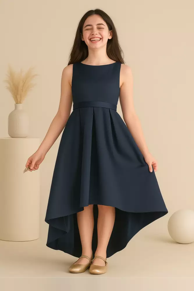 Kız Çocuk Saten Abiye Elbise – Prenses Model Mezuniyet ve Parti Elbisesi Lacivert Lacivert