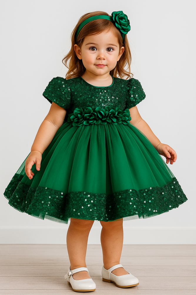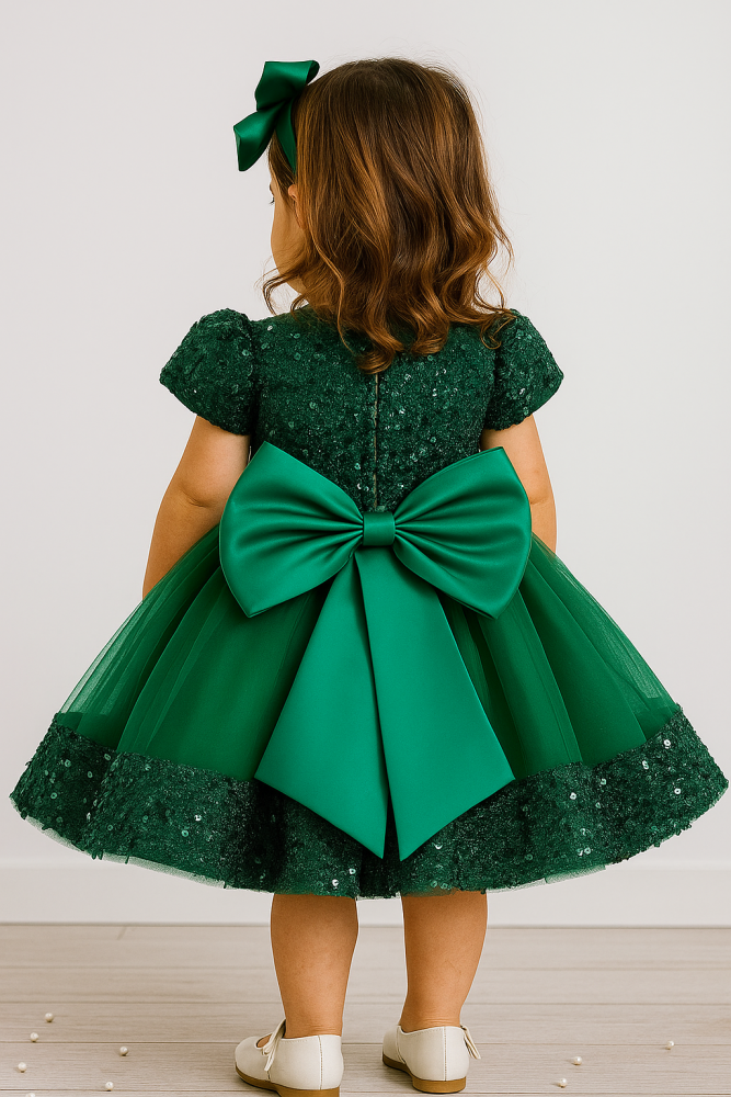- Özel günlerde göz alıcı bir şıklık sunan payetli tüllü elbise, kız çocuklarının zarifliğini ön plana çıkarır.; - 3-15 yaş grubuna uygun tasarımıyla rahat hareket etme özgürlüğü sağlar ve çocukların konforunu düşünerek tasarlanmıştır.; - Yeşil renk seçeneğiyle dikkat çekici ve canlı bir görünüm kazandırırken, mini boyu ile dinamik bir stil oluşturur.; - Denim kumaşı sayesinde dayanıklılık ve uzun ömürlü kullanım sunar; TR menşeli olmasıyla yerli üretim kalitesini garanti eder.; - Fermuarlı kapama şekli sayesinde kolay giyilip çıkartılabilir ve pratik bir kullanım sağlar.; - Balon kol tasarımı ile modern ve trend bir görünüm elde edilirken, kısa kol boyu serin günlerde rahatlık sunar.; - Şık gece ortamları için ideal olan bu elbise, kemer detaylarıyla feminen silueti vurgular.; - Payet dokuma tipiyle ışıldayan detaylar, elbisenin zarafetini artırarak özel anlarda parlamanızı sağlar.;