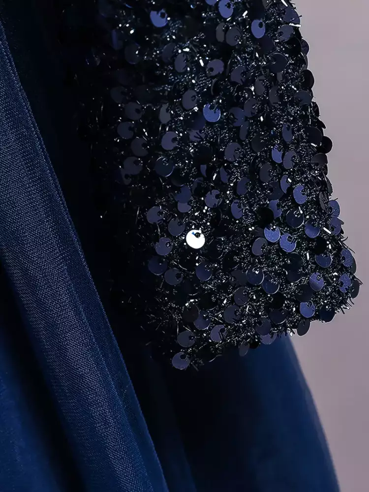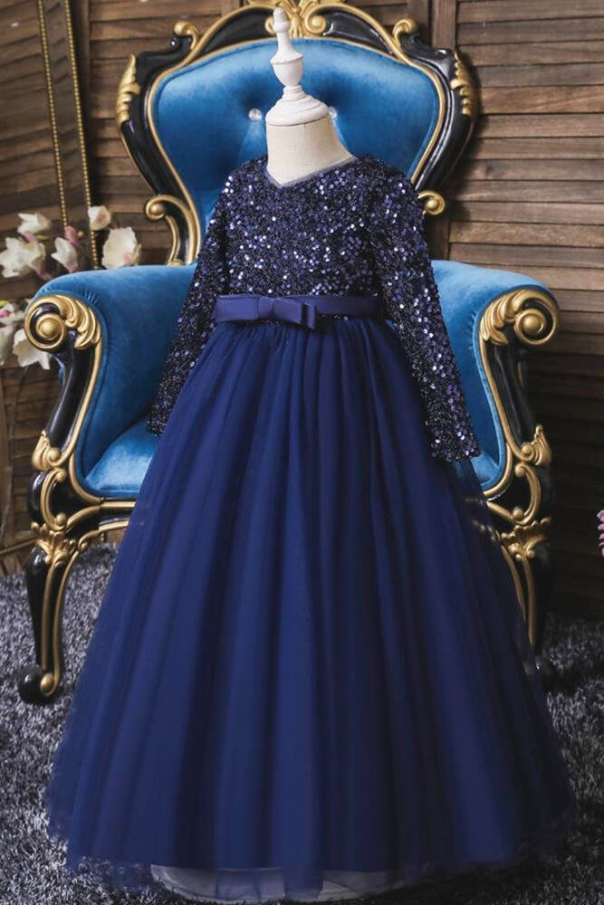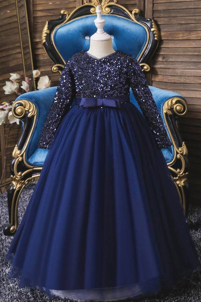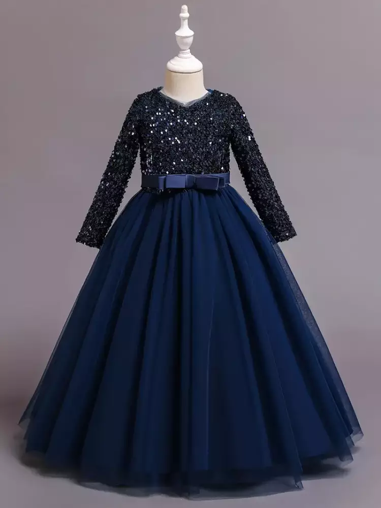 Lacivert Kız Çocuk Özel Gün Elbisesi – Parlak Payetli Abiye Lacivert