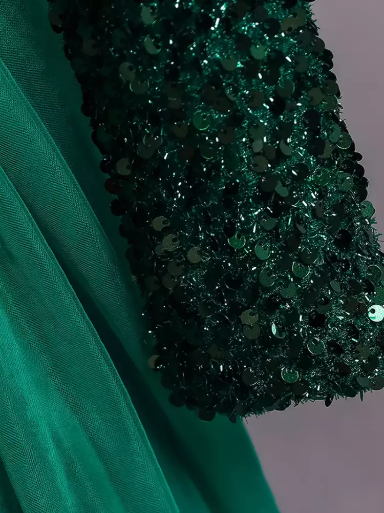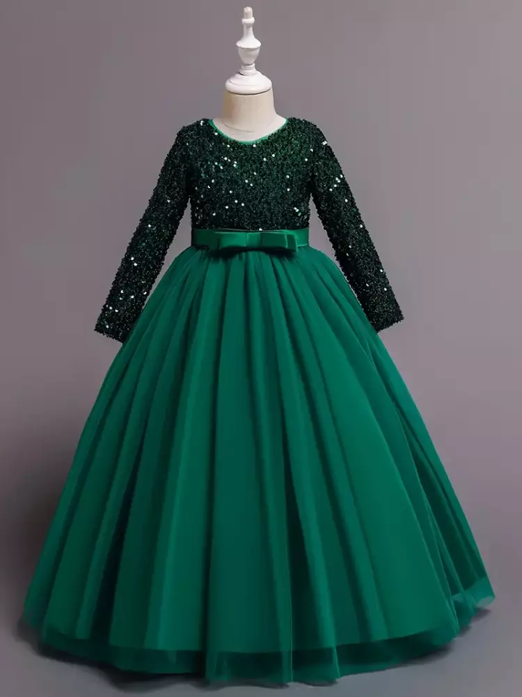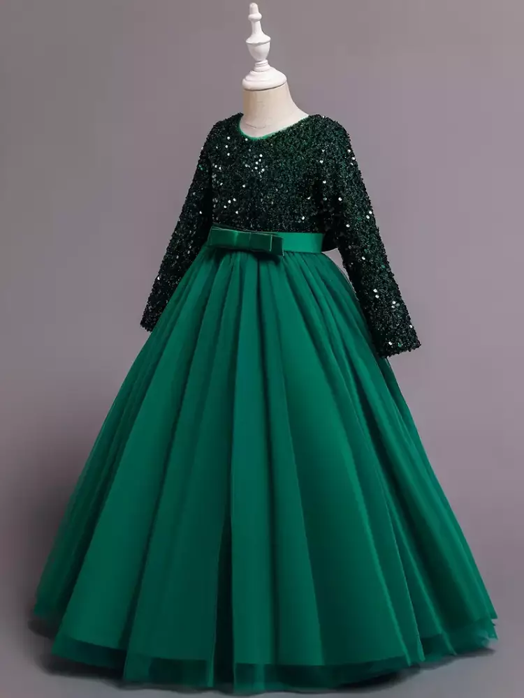 Yeşil Kız Çocuk Özel Gün Elbisesi – Parlak Payetli Abiye Yeşil